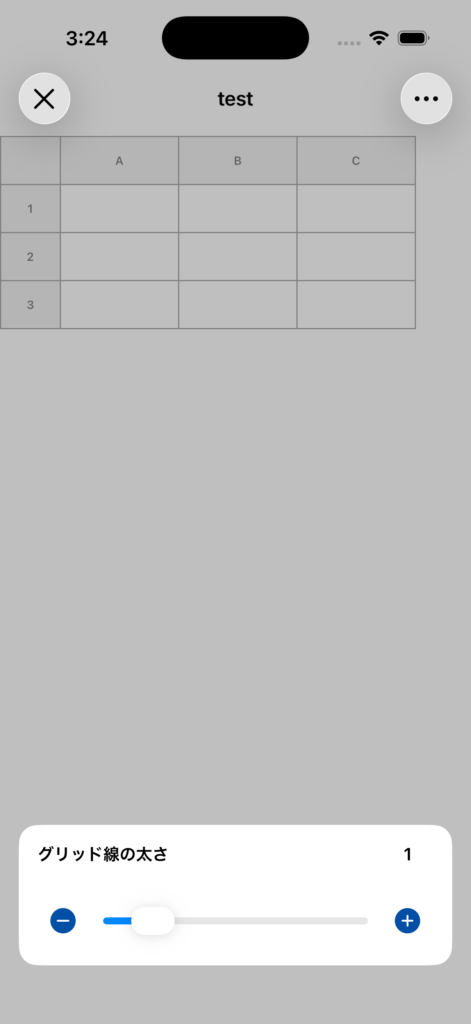 表示された調整パネルで、スライダーまたは + / – を使って太さを設定します。