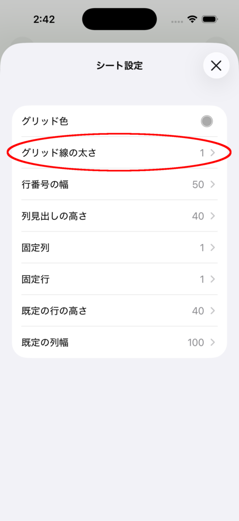 このページでは、シート全体のグリッド色とグリッド線の太さを変更する方法を説明します。