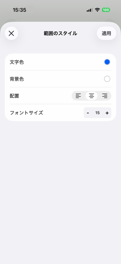 設定後、適用 をタップすると選択範囲に一括反映されます。