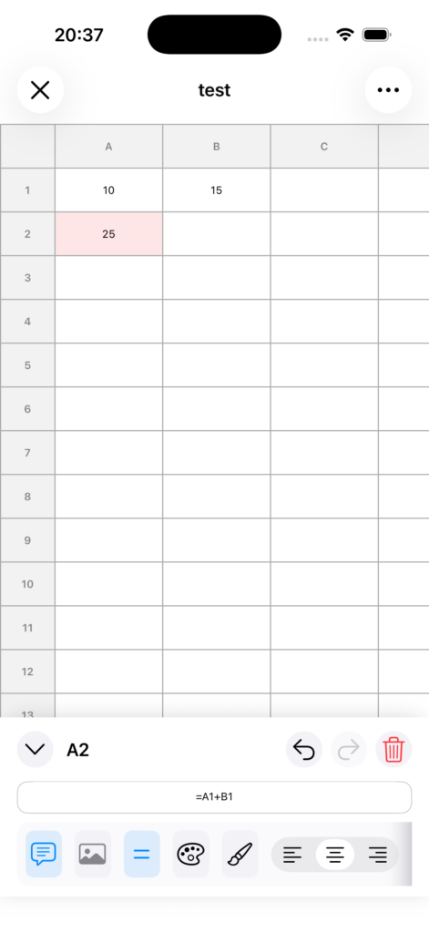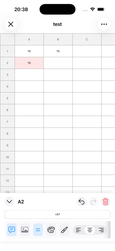 数式編集中にセルをタップすると、そのセル参照を自動挿入できます。