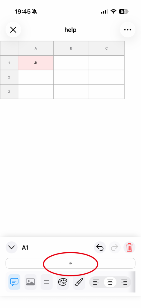 セルをタップすると、画面下にセル編集パネルが表示されます。