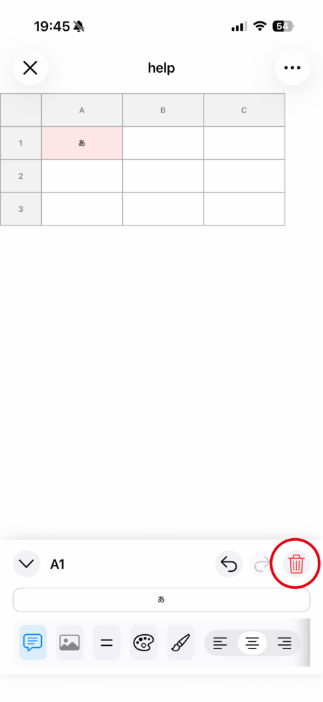 削除したいセルを開き、編集パネル内のゴミ箱ボタンを押すと、そのセルの内容を削除できます。