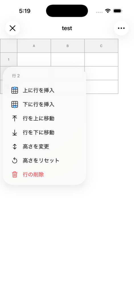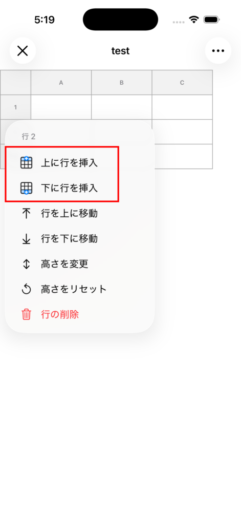 • 末尾に追加したい場合は、右上メニューの 行を追加 / 列を追加 でも実行できます。