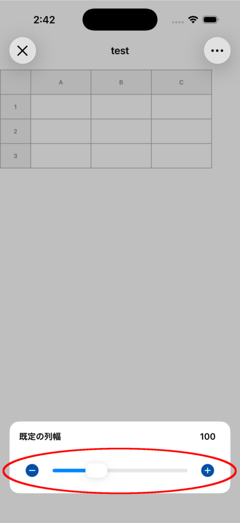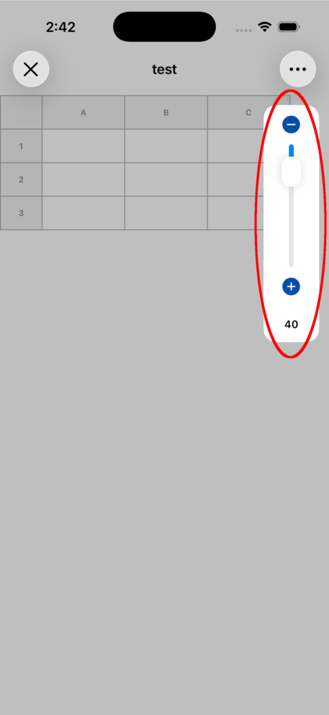 表示された調整パネルで、スライダーまたは + / – で値を変更します。