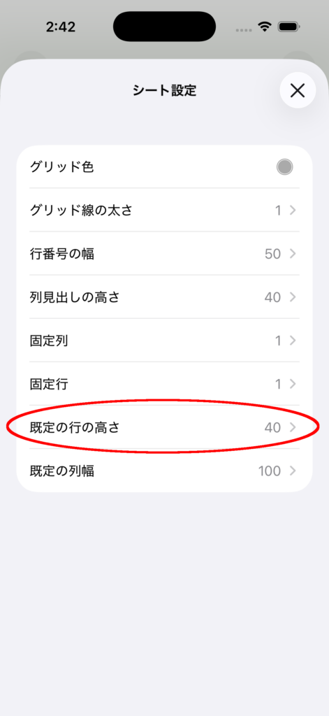 • 個別に変更済みの行高・列幅は、その個別設定が優先されます。